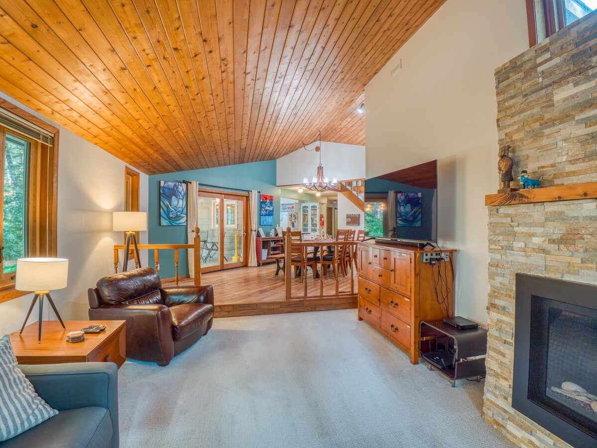 Chalet unico tutto l'anno! Perfetto per una fuga di coppia o per una famiglia (massimo 4 persone). Durante l'estate, goditi un falò, il kayak e i giochi all'aperto. Durante l'inverno, torna in una calda baita e gioca a giochi da tavolo vicino al camino dopo un'intera giornata di motoslitta o altre attività all'aperto. Asciuga l'attrezzatura invernale in una casa riscaldata/sala giochi separata con tavolo da biliardo e bersaglio per freccette!