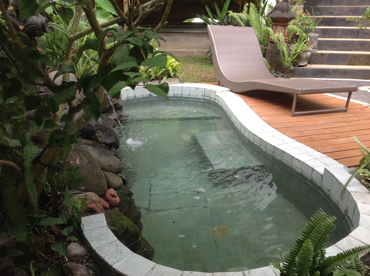 Our brand new Junior Suite has a balcony that overlooks the River and rice paddies and our beautiful Riverside Pool ! Only 230m from busy central Ubud with 100s of restaurants and only a few minutes walk to Yoga Barn and Monkey Forest. You will have your own private bathroom with shower plus a small private kitchenette where you can prepare home cooked food. Includes A/C, daily cleaning. Recently relisted - to see our past reviews see airbnb.com.sg/h/sucijunior !