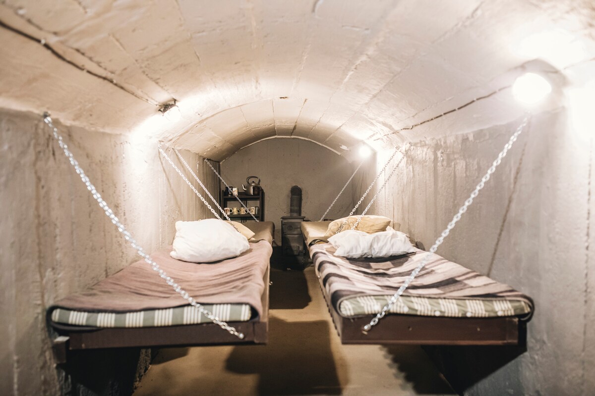 Il bunker si trova in una vasta area di interesse naturale e storico. Ci sono molte possibilità di esplorazione. Questa è un'esperienza autentica che affascinerà sia gli amanti dell'avventura che gli appassionati di storia! - Trascorri la notte in un bunker dell'era della Guerra Fredda. - Comfort di base: dotato di una stufa con illuminazione all'interno. - 4 posti letto, perfetti per viaggiatori singoli, coppie o gruppi di amici. - Avventura: niente luci di città, solo il silenzio della foresta e l'aura dello spazio sotterraneo.