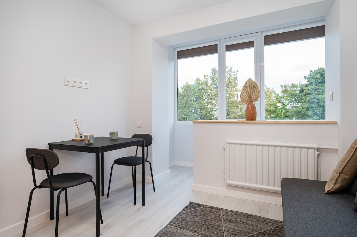 La ristrutturazione è stata completata nel gennaio 2024. Primo appartamento super accogliente situato accanto a uno splendido fiume in una città incredibilmente ben tenuta e ordinata! Nelle vicinanze c'è anche una splendida natura che potrebbe rendere le belle passeggiate serali. NUOVA aria condizionata portatile per combattere il caldo:) A soli 15 minuti dall'aeroporto di Kaunas! Ci sono due grandi supermercati a 500 metri di distanza! E anche un Lidl a 700 metri. Ci sono 3 ristoranti nelle vicinanze (1 km) che includono un Hesburger.