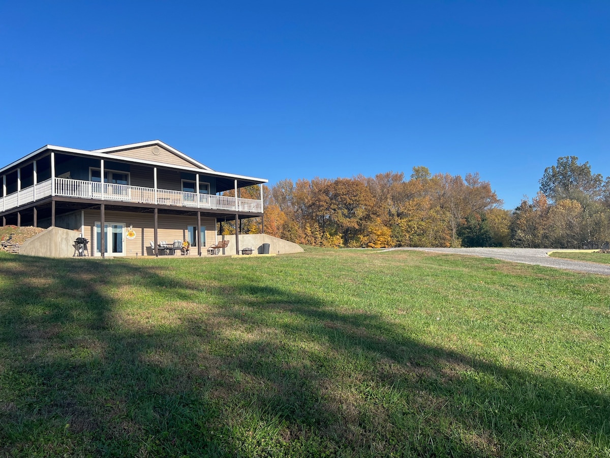Nascosta ai piedi del The Hills Campground, questo tranquillo chalet 3BR, 4BA dispone di due ponti, una vasca idromassaggio di grandi dimensioni, un grande focolare, un biliardino e sentieri per raggiungere il torrente e la vicina cantina. Perfetto per divertirsi! Include anche una rampa per sedie a rotelle e porte allargate in una suite matrimoniale grande per una migliore accessibilità, ed è adatto agli animali domestici. Un rifugio tranquillo e spazioso per famiglie e amici nel cuore dello Shawnee Hills Wine Trail, in più laghi e nella foresta di Shawnee!