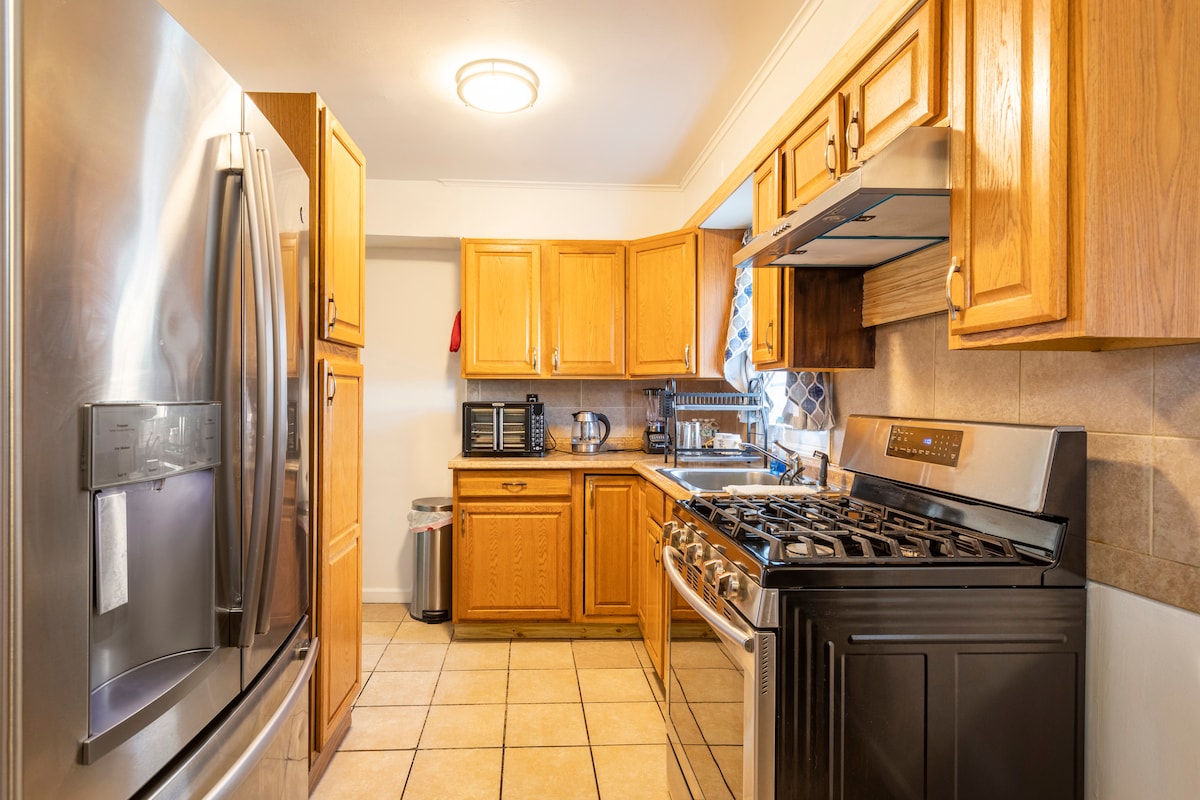 Appartamento con 2 camere da letto in un quartiere sicuro. 2 letti matrimoniali e materasso gonfiabile a due piazze. Set di asciugamani e lenzuola extra. Tanto spazio con accesso alla cucina, lavatrice/asciugatrice (non condivisa con nessun altro), ampio soggiorno e zona pranzo. Avrai il tuo ingresso privato. Vicino a molte attrazioni, a 25 minuti da JFK e a breve distanza in treno o in auto da New York e vicino alla spiaggia! Tutti i tipi di fast food e deliziosi ristoranti nelle vicinanze! L'appartamento è in ottime condizioni, igienizzato e pulito in un ambiente fantastico.