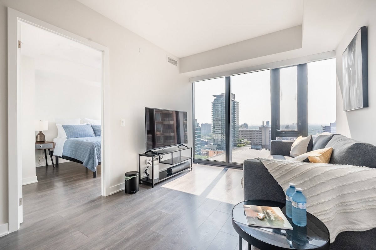 Ti diamo il benvenuto al Fort York Flat! Questo spazio con 2 camere da letto e 1 bagno è stato ristrutturato con cura utilizzando un mix di arredi moderni e contemporanei per creare un luogo rilassante e di lusso in cui rilassarsi e godersi tutto ciò che il centro di Toronto ha da offrire. La nostra posizione e la cassetta di sicurezza intelligente situata alle porte d'ingresso rendono il check-in nell'appartamento più facile che mai, senza doversi preoccupare di interagire con il personale della reception o di aspettare gli ascensori.
