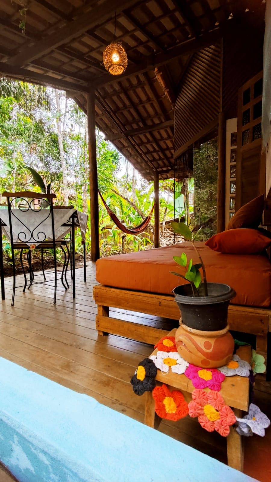 Chalet ben attrezzato, ideale per 2 persone, con possibilità di aggiungere un altro materasso singolo. Piscina privata, cucina completa, bagno con armadio, ampio balcone, con tutta la privacy, circondato da bosco con bellissimi fiori e frutti. Situato su Sítio Labareda, un luogo che respira Roça e Arte. Qui sarai in un rifugio, immerso nella natura e vicino al borgo di Serra Grande, alle spiagge e all'Itacaré. * Abbiamo cani e gatti in loco, qualsiasi domanda invia un messaggio.