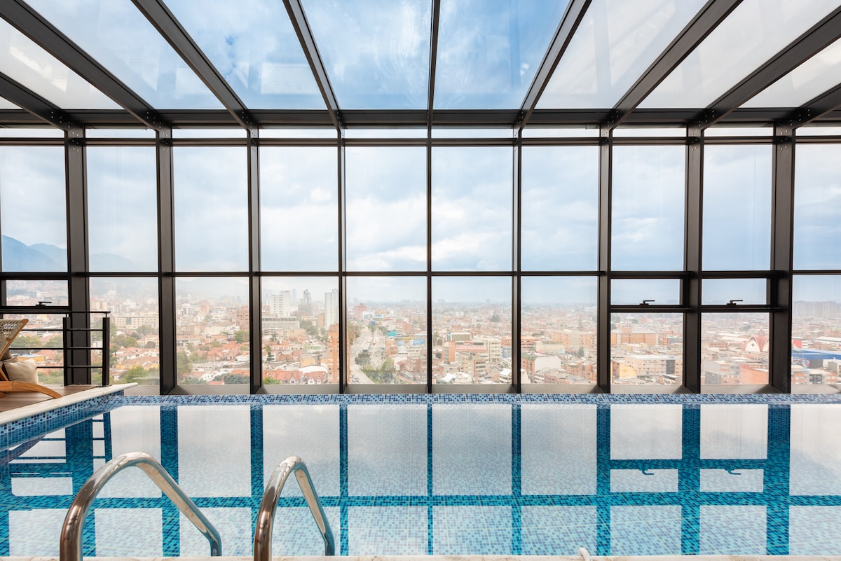 🌆 This accommodation is located in Quinta Camacho, a bohemian and vibrant neighborhood. 🌇 Enjoy the view from the 15th floor balcony and explore nearby restaurants and bars. 🛋️ Quiet and comfortable space to relax. Ideal for couples and solo travelers. 🏙️ 15th floor with spectacular views 🛏️ High-quality hotel-grade mattress 📺 65” TV with Netflix, Prime Video, and Disney+ 🏊 Swimming pool (reservation required), cardio area, game room 🚶 Steps away from Zona T and the financial dist
