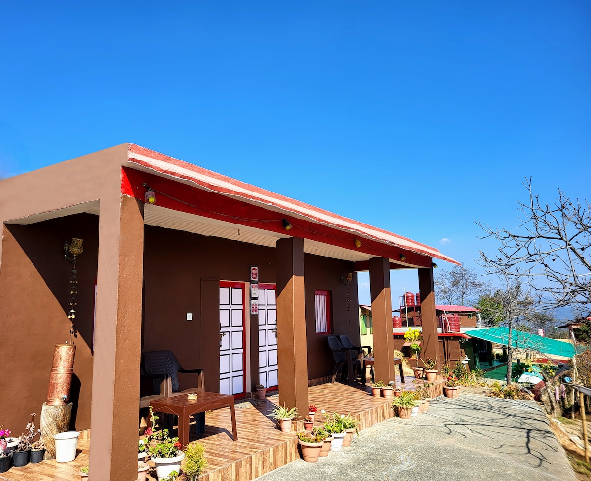 Wi-Fi, Towels, Wall Fan, Cupboard, Power Backup, Notepad and Pen , Well Ventilated, Himalayas and Sunrise view, Kettle with tea and coffee sachets, Attached Washroom with geyser, Beautiful ambience and Surroundings, Charging stations on each side of the bed, Toiletries: Shampoo, Body wash, moisturizer, Dental Kit