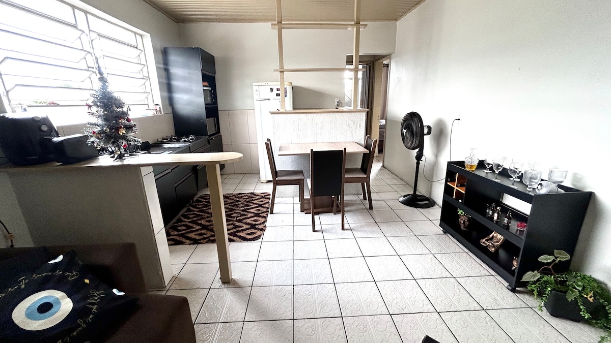 Aconchego Vacaria Ti diamo il benvenuto ad Aconchego Vacaria. La nostra casa offre un ambiente unico, perfetto per chi vuole rilassarsi, lavorare o esplorare tutto ciò che Vacaria ha da offrire. ✨ Cosa puoi trovare qui: ✔️ Ambienti integrati, illuminati e con decorazioni in stile moderno. ✔️ Cucina completa. Spazio ✔️ confortevole. ✔️ Wi-Fi veloce. ✔️ Posizione strategica nel centro della città. Perfetto per coppie, chi viaggia da solo e piccole famiglie.