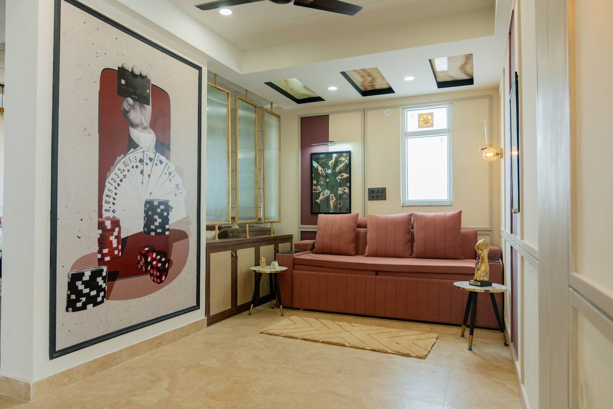 Dolce Den: un soggiorno artistico di lusso a Jaipur Ampio patio: Perfetto per un caffè mattutino o soirées illuminato dalle stelle. Entertainment Suite: proiettore all'avanguardia ed elegante tavolo da biliardo per il massimo divertimento. Camere da letto opulente: •Lunar Retreat: arte illuminata dalla luna e murales sereni. •Flamingo Suite: un vivace lusso ispirato ai fenicotteri Cucina e bar all'aperto gourmet: uno spazio chic per creazioni culinarie ed eleganti sorseggi Dolce Den unisce serenità e opulenza per un'esperienza indimenticabile.