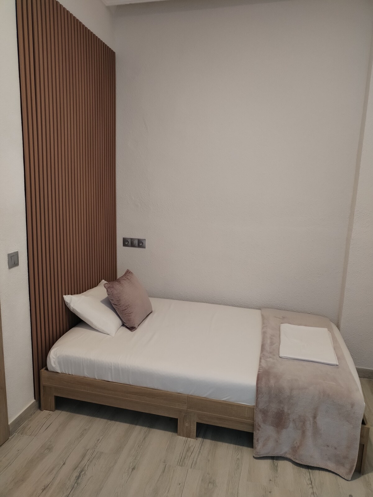 Questa camera è perfetta per piccoli gruppi o famiglie che desiderano comfort e funzionalità durante il loro soggiorno a Valencia. È dotato di un frigorifero, un letto matrimoniale e un letto singolo, offrendo uno spazio pratico e confortevole per riposare dopo una giornata trascorsa a esplorare la città. È dotata di un bagno privato completo di doccia, WC e articoli da toeletta, garantendo privacy e comfort. Ideale per soggiorni sia brevi che lunghi.