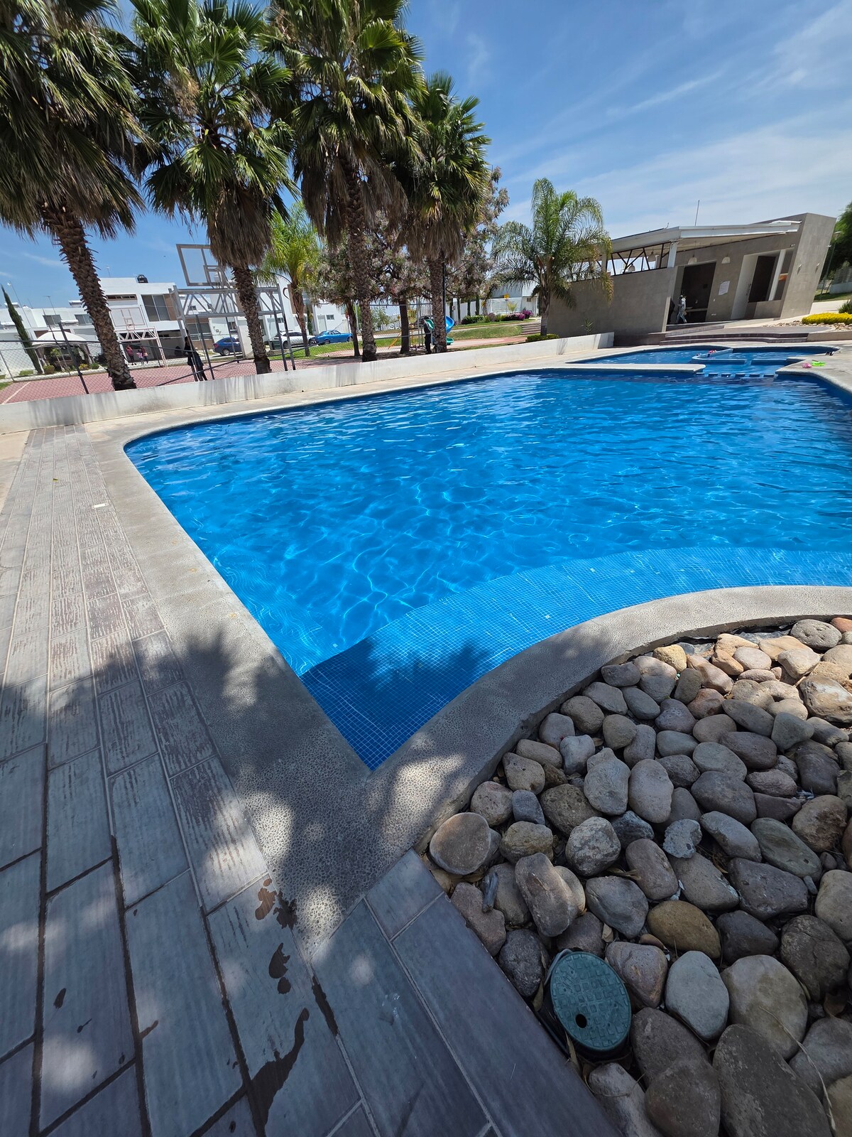 Un departamento residencial con mucho estilo ideal para disfrutar con tu familia, dentro de un exclusivo residencial con alberca. ••SI FACTURAMOS•• Cuenta con áreas comunes como alberca,dog park, ajedrez gigante, canchas de fut bol, juegos infantiles, etc. IMPORTANTE: Para el uso de alberca se debe solicitar las pulseras antes del inicio de la reservación. NO ofrecemos el servicio de aire acondicionado, lavadora o secadora.