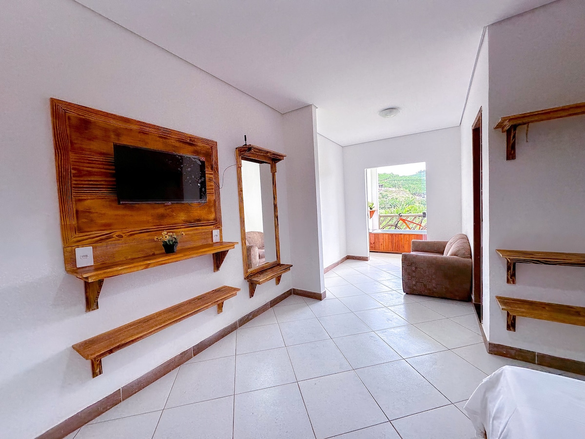 Rilassati e scollegati in questo incantevole appartamento situato all'interno di una piantagione di caffè, a soli 15 km dal centro di Caratinga, con facile accesso in BR. Ideale per coppie, famiglie o piccoli gruppi, lo spazio può ospitare fino a 4 persone in tutta comodità, offrendo una camera da letto con letto matrimoniale e un bicama. Il balcone è il fiore all'occhiello: una vasca da bagno con vista sulla natura invita a riposare e a momenti speciali. L'agriturismo è un invito alla tranquillità, con paesaggi che ispirano calma e benessere.