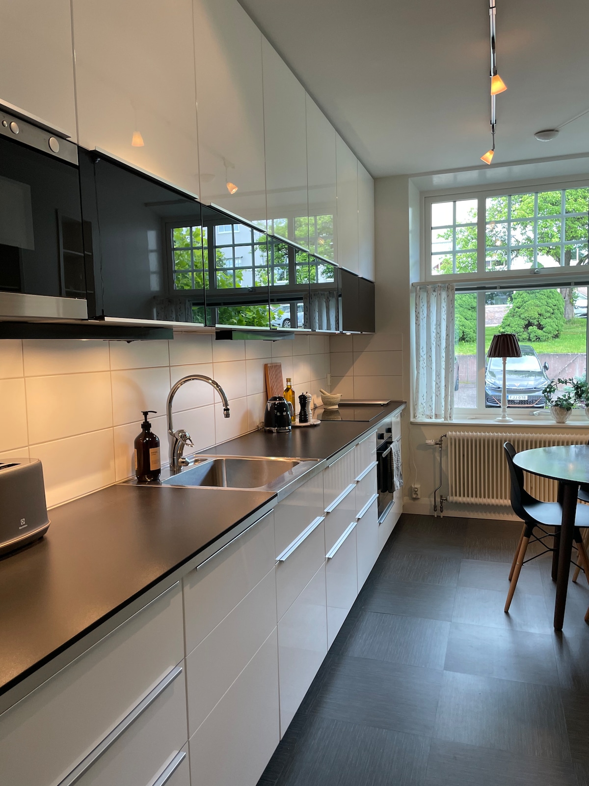 Appartamento seminterrato fresco e moderno nel centro di Örebro con ingresso privato, patio e parcheggio gratuito. L'appartamento è di circa 26 mq e dispone di bagno e cucina. La cucina è dotata di frigo con vano freezer, piano cottura, friggitrice ad aria, macchina per il caffè, bollitore e tostapane. Wifi e schermo TV gratuiti con cromecast. I caricabatterie per auto elettriche sono disponibili a un costo aggiuntivo. A circa 15 minuti a piedi dalla stazione e a soli 2 km dal centro città. A 200 metri dalla fermata dell'autobus più vicina. A massimo 10 minuti a piedi dal negozio di alimentari più vicino.