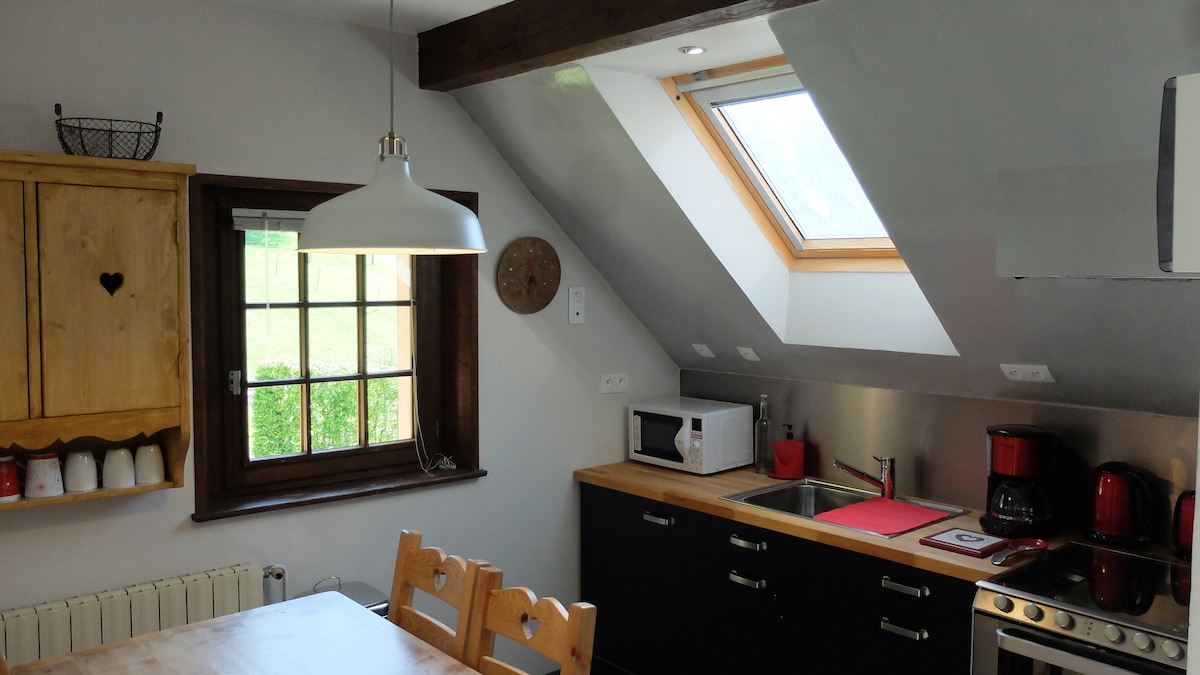 Questo appartamento, situato in una casa di famiglia nel cuore dei Vosgi, può ospitare fino a 4 persone. Il plus: come in hotel, all'arrivo i letti sono fatti e gli asciugamani a disposizione. Sulle alture del villaggio, il risveglio con il canto degli uccelli è assicurato, per una vacanza rilassante in mezzo alla natura!