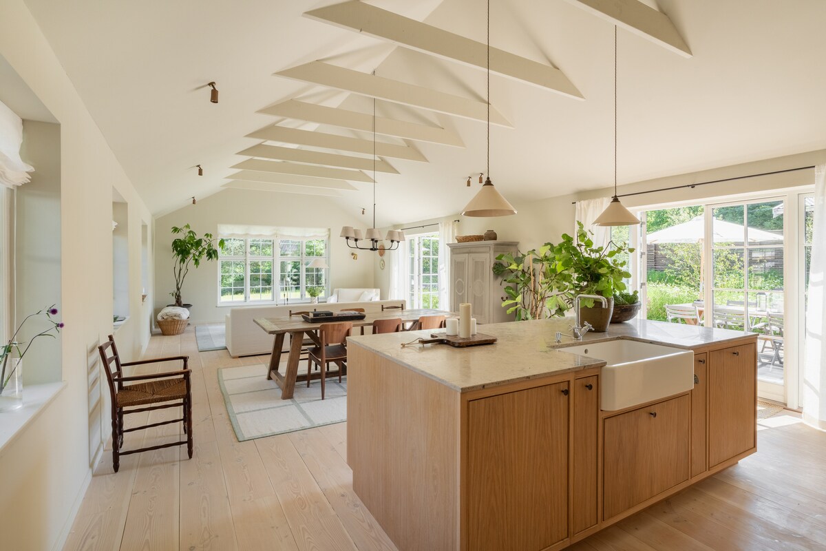 Questa casa sulla spiaggia si trova direttamente sulla spiaggia, con una vista a 180 gradi sulla Svezia e su Kronborg. Attività ricreative (mare, foresta, laghi, Castello di Kronborg e Søfartsmuseet, attrazione dell'Unesco). Amerai questa casa per la favolosa vista sul mare, l'accesso diretto al mare e la luce. Dall'altra parte della strada si trova la foresta protetta di Teglstruphegn, con grandi querce secolari. Molto romantico. Questo è un posto dove stare con la mente. Molti ospiti soggiornano qui solo per godersi il panorama in tutte le stagioni.