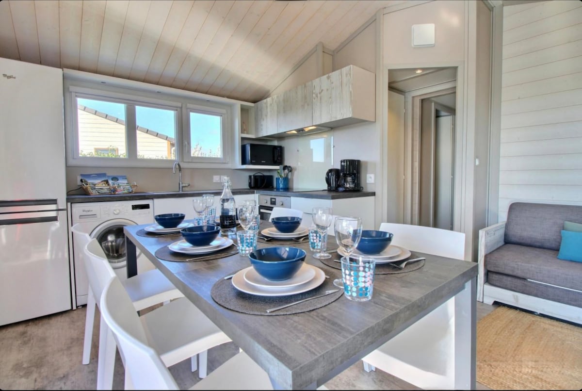 Elegante chalet completamente attrezzato, tranquillo, ideale per godersi la natura in famiglia o con gli amici grazie alla sua grande terrazza il più vicino possibile agli alberi. L'alloggio è dotato di aria condizionata per il vostro benessere. A prestissimo alla Chevêche.