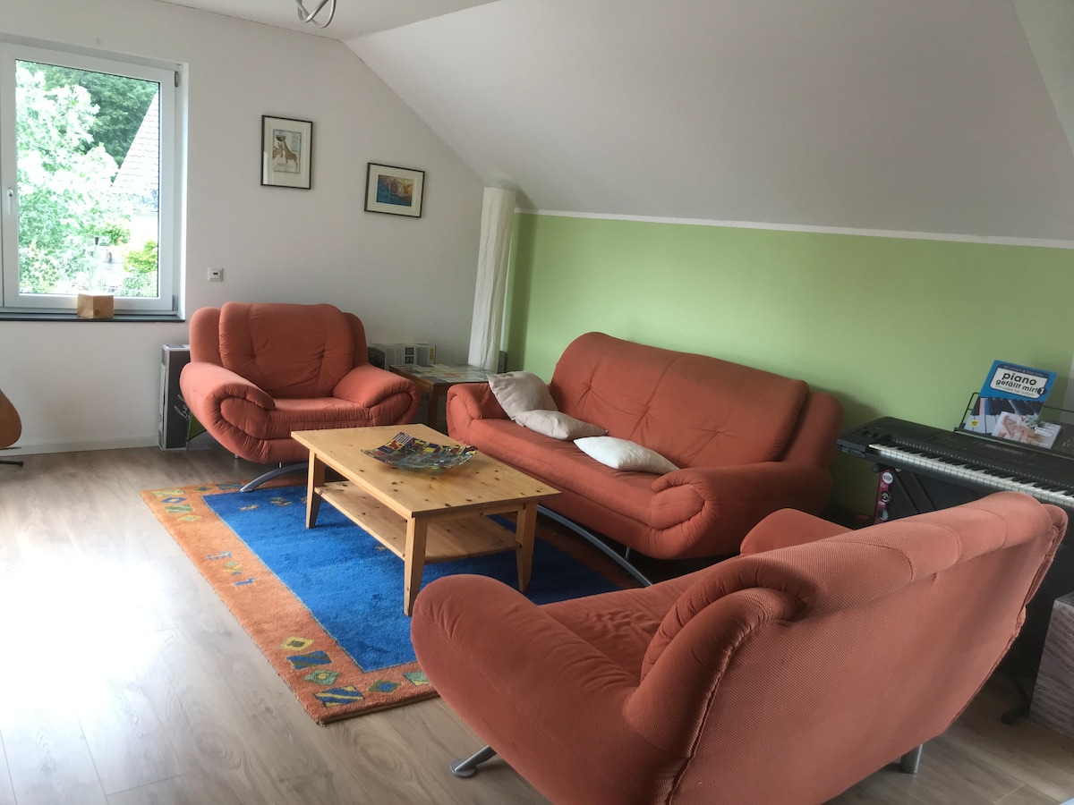 L'appartamento di 35 mq si trova al 1° piano della casa in una tranquilla strada residenziale a Willich-Münchheide. Per l'autostrada 44 = 5 min, per la fiera di Düsseldorf = 20 min È completamente arredato, lenzuola, asciugamani, pulizia finale sono inclusi. L'angolo cottura con 2 piastre elettriche, forno a microonde, tostapane, bollitore, macchina per il caffè e stoviglie è adatto per la preparazione della colazione o pasti semplici Animali domestici: sì, si prega di chiedere informazioni in anticipo; cane presente