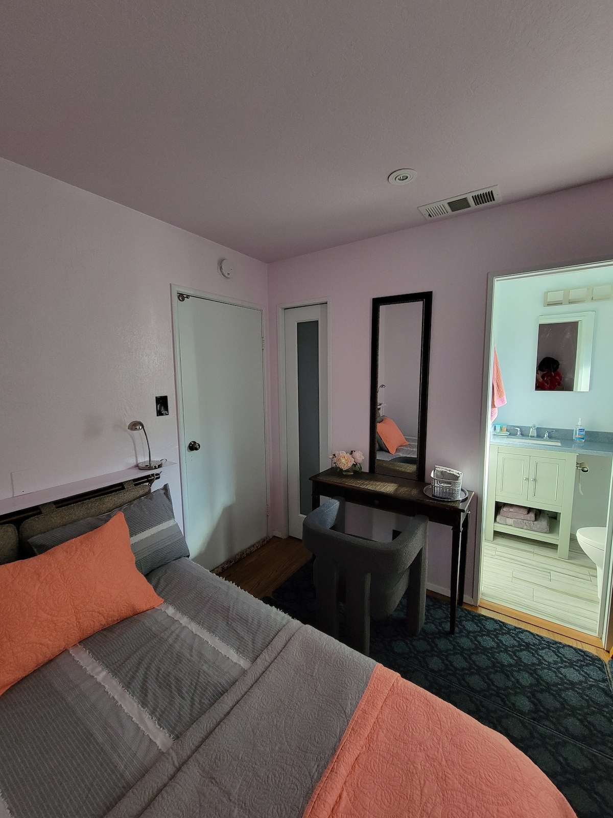 Full size bed. Shared bathroom