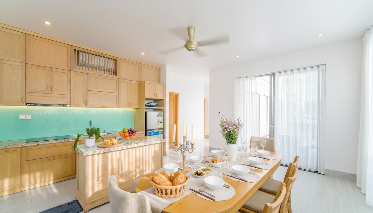 Designed for multi-generation families and groups traveling together, this spacious beach house offers multiple ground-floor bedrooms, easy access throughout the home, and a fully enclosed private garden where children can play safely. Local right An Bang Beach, the house combines a peaceful, residential setting with the convenience of nearby cafés and local dining. Regular housekeeping is included, so you can relax and enjoy your stay without worrying about daily logistics