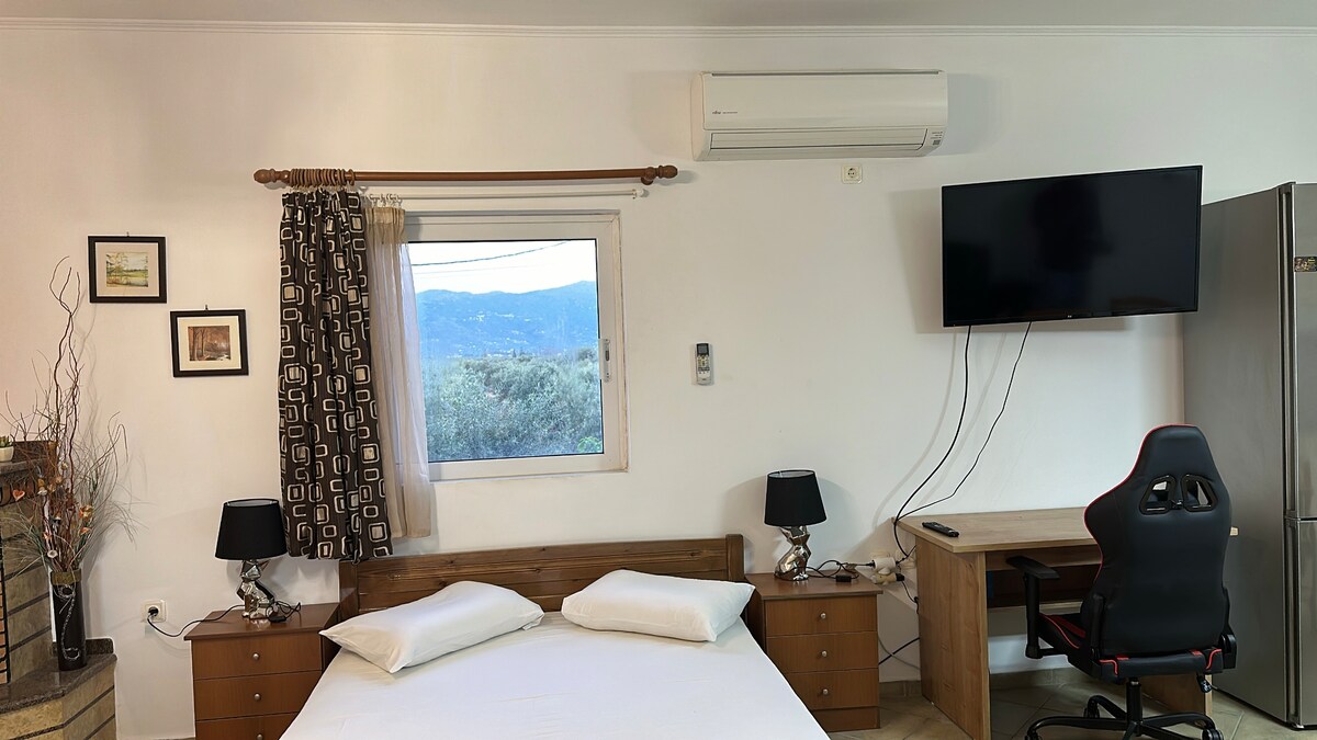 Benvenuto alla Almi Guesthouse, un piccolo gioiello, letteralmente sul mare. La struttura è composta da un unico open space con soffitto a cupola tradizionale e bagno, per un totale di 18 mq. All'esterno c'è un piccolo cortile lastricato che conduce al bordo delle rocce. L'edificio è stato ricostruito nel 2019 e si trova sul lato inferiore della strada che collega il ponte con le porte del castello, vicino a Kourkoula, una piscina naturale.