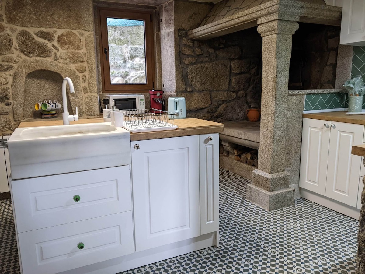Costruita nel 1800, questa casa in pietra si trova nel cuore della regione di O Condado, un'area caratterizzata da un patrimonio naturale unico grazie al passaggio dei fiumi Miño e Tea. In esso si trovano, da un'ampia varietà di luoghi adatti alle escursioni, a una zona di produzione vinicola di D. O. Rías Baixas. Come principale attrazione culturale, lo storico confine tra la Galizia e il Portogallo settentrionale è la chiave, che si trova a soli 5 minuti dalla proprietà.