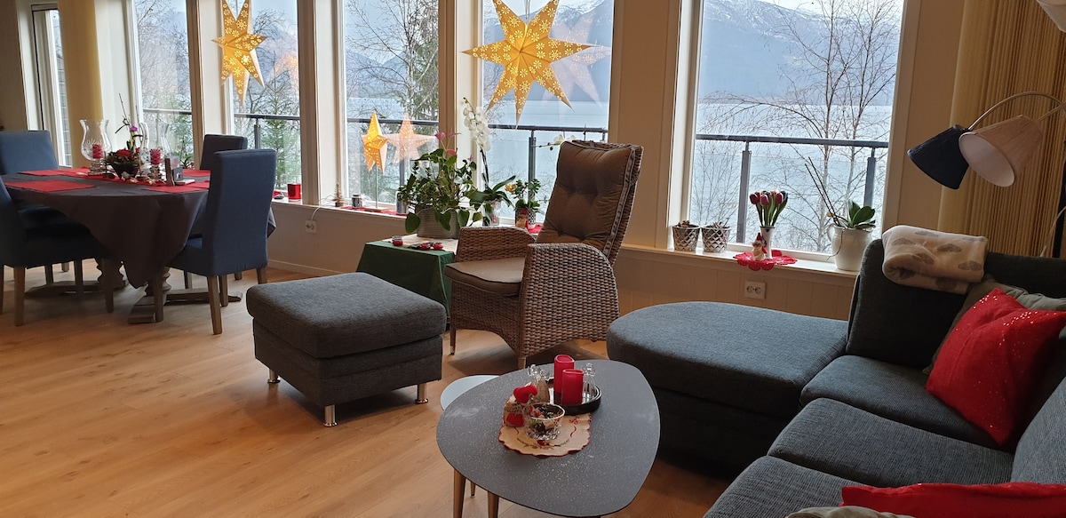 FJORD BASECAMP Il tuo RIFUGIO PANORAMICO E TRANQUILLO SUL FIORDO, a 10 minuti in auto dal villaggio di Vikøyri. Il tuo CAMPO BASE nel cuore dei fiordi, situato in posizione centrale per gite di un giorno. Vik è nella lista del patrimonio mondiale dell'UNESCO. STACCA LA SPINA: pesca, relax e riflessione sul fiordo. Vicino a Bergen (3 ore), Flåm (1 ora e 35 minuti), Voss (1 ora e 30 minuti), al ghiacciaio di Jostedal, a Gudvangen, a Geiranger (4 ore), a Balestrand (1 ora), a Fjærland (1 ora) e ad Ålesund (5 ore). Visita le montagne (Vikafjellet a 30 minuti). Perfetto per le coppie. Lingue parlate: tedesco e inglese.