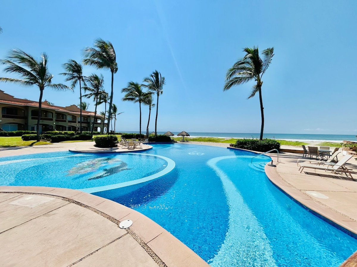 Luglio e agosto 2026 sono aperti! Sconto del 7% per almeno 7 notti. Il soggiorno minimo è di 5 notti PER L'APPLICAZIONE DEL CONDIVIDI ALCUNI DATI PERSONALI. GRAZIE! Offriamo un appartamento economico molto confortevole n. 8. Personale eccezionale e assistenza alla reception. Giardini rilassanti, piscina, tennis, pickleball. Spiaggia di Cerritos, piano terra! Le onde spruzzano il patio e dondolano per farti dormire! La zona d'oro è molto vicina, Malecon a pochi minuti in Uber o in autobus.