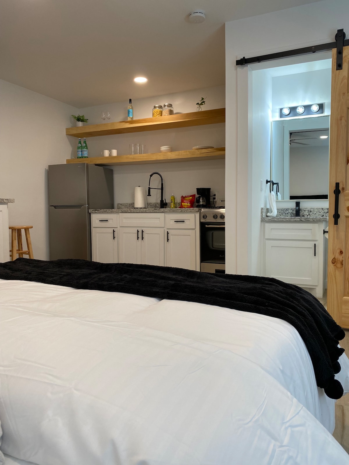 Questo monolocale moderno è completamente attrezzato con angolo cottura, lavatrice e asciugatrice ed è perfetto per soggiorni lunghi. Il nostro monolocale per gli ospiti è indipendente dalla casa principale. Il monolocale si trova nel cortile sul retro e dispone di un ingresso privato. Situato in una bellissima e sicura suddivisione di Edinburg. È possibile parcheggiare di fronte alla casa e attraversare la porta in legno del patio, che sarà indicata nelle istruzioni per il check-in dopo la prenotazione.