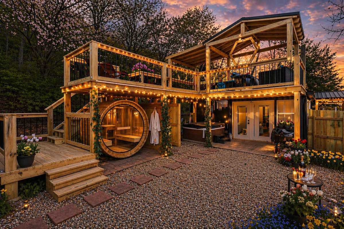 Cozy Cabin w/ Sauna ·HotTub RoofTop Firepit. Games