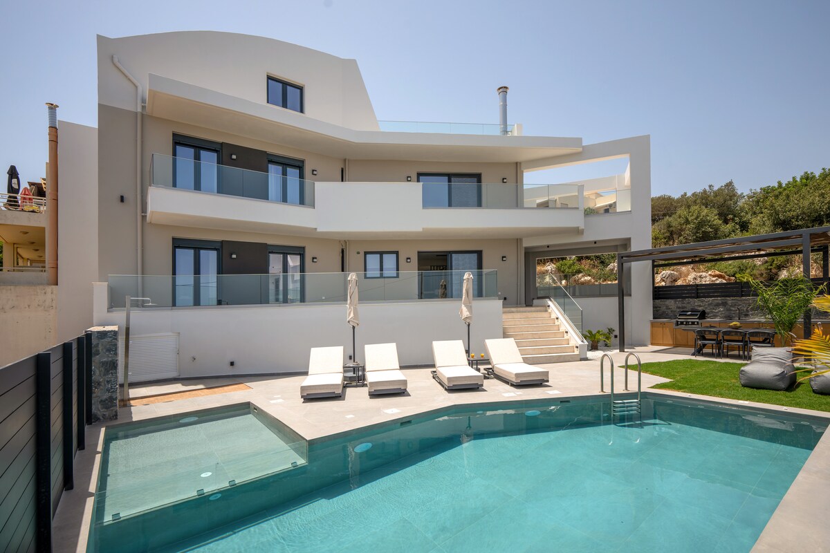 Astelia Villa is a brand-new 3-bedroom retreat with an infinity heated pool, panoramic sea views, and sunsets you won't forget. Ultra-fast 400 Mbps internet with 5G backup makes it ideal for remote work from a luxury setting. Open-plan living and wide outdoor terraces designed around the view - clean lines, natural materials, nothing between you and the Cretan coastline. Set on elevated ground between Chania and Rethymno, minutes from Almyrida, Kalyves, and Stavros beaches, away from the crowds.