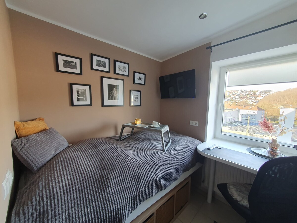 Ti diamo un caloroso benvenuto nel nostro accogliente appartamento. L'appartamento è situato in una tranquilla strada senza uscita con parcheggio sufficiente nel bellissimo quartiere di Hagen-Emst. Un ingresso indipendente con terrazza coperta esposta a sud conduce al soggiorno/camera da letto, alla cucina completamente attrezzata e al bagno moderno con cabina doccia. Dintorni: - A pochi passi dalla Stadthalle (10 minuti) e dal centro di Hagen (15 minuti). Università di Scienze Applicate della Vestfalia del Sud-Westfalia, Fern-Uni (10 minuti in auto). Fermata dell'autobus in loco.
