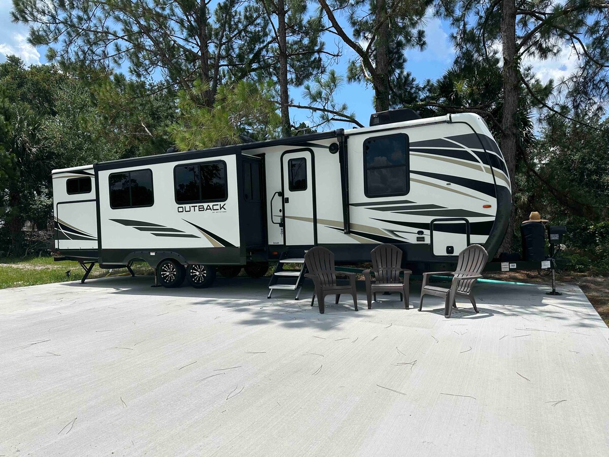 Camper di lusso immerso in una proprietà privata e recintata vicino a Sanford, in Florida. Dal momento in cui metterai piede in questo splendido camper di lusso, ti ritroverai trasportato in un regno di lusso e comfort senza pari. Mentre ti avvicini alla proprietà, i tuoi occhi sono catturati dall'ambiente rilassante e dall'atmosfera pacifica, che combina elementi di architettura moderna e tecnologia all'avanguardia. Splendente sotto il radioso sole della Florida.