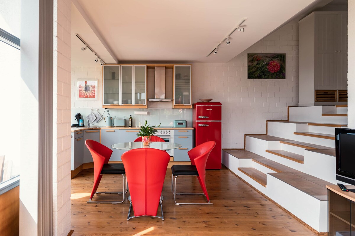Un ex sottotetto in un affascinante edificio storico è stato trasformato in un monolocale nel 2016 con attenzione ai dettagli. Non c'è quasi nulla che si possa comprare. Da una piccola terrazza sul tetto si può ammirare la vista sui tetti di Norimberga. Nella stanza accogliente e unica ci si sente semplicemente a casa e si può godere la tranquillità. Situato in posizione centrale ma molto tranquilla, il centro di Norimberga è raggiungibile con la metropolitana in 10 minuti.