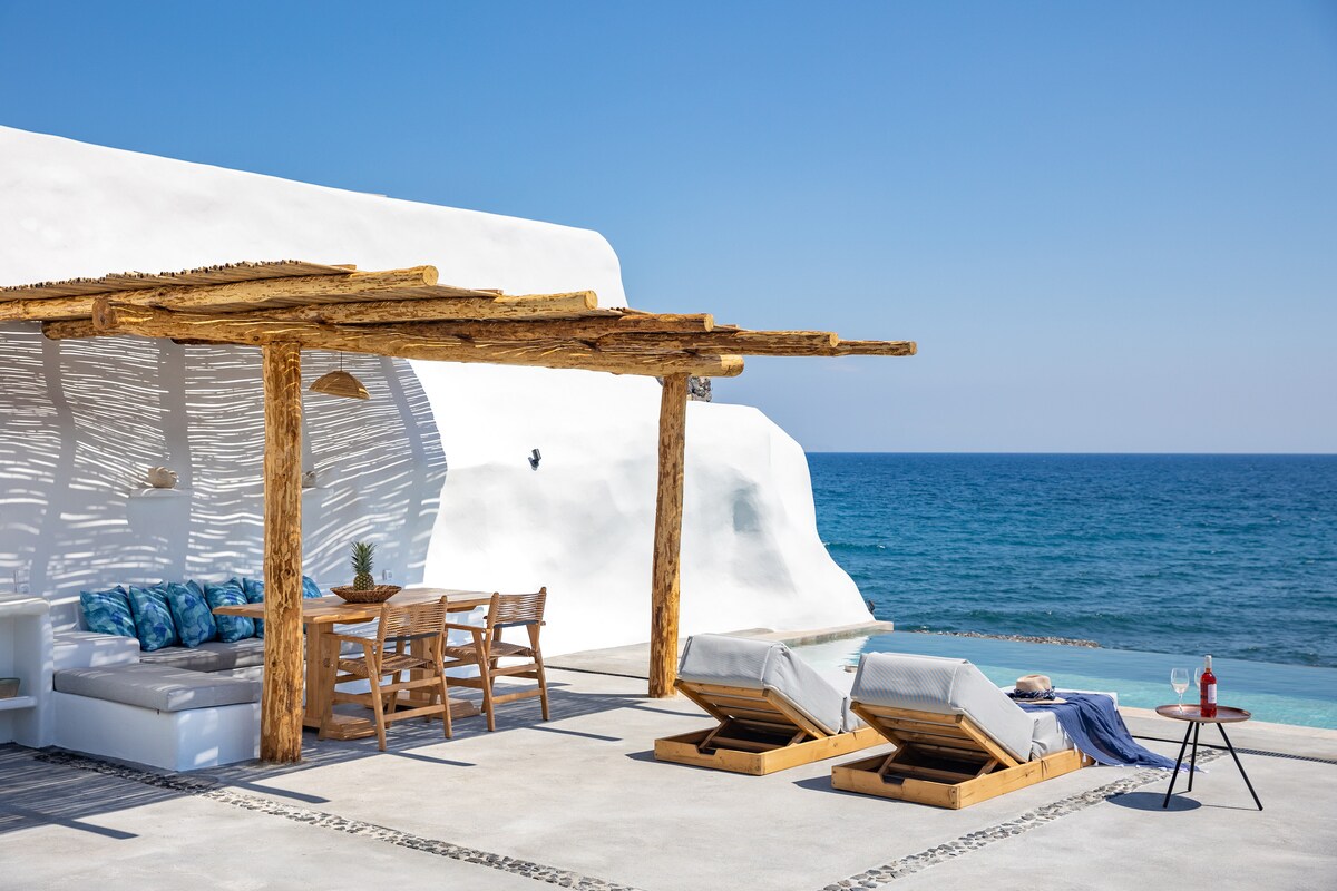 La suite Anemos si trova ad Akrotiri e offre una vista sulla caldera e sulle isole vulcaniche. È una suite con piscina privata riscaldata a sfioro in stile grotta, con sistema a getto e patio privato. C'è un letto king-size che può ospitare due persone. La colazione giornaliera è inclusa e servita in suite. È incluso un servizio di pulizia. Comunicaci in anticipo i dettagli del tuo arrivo, così potremo organizzare un taxi/trasferimento per te.