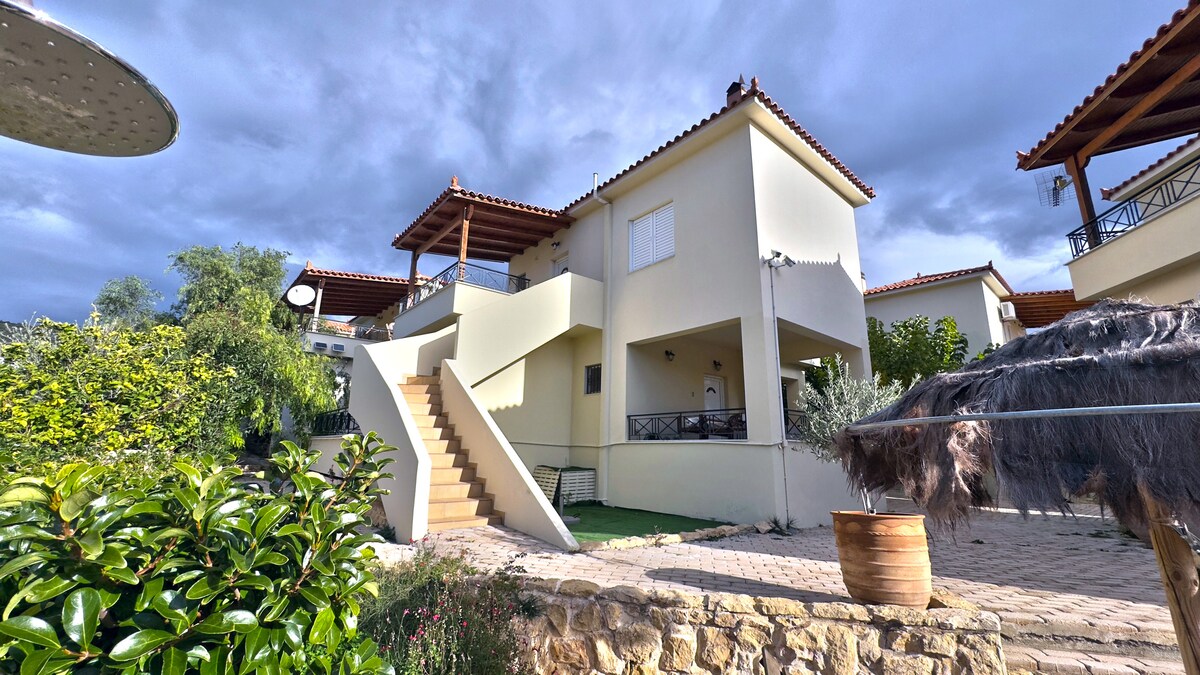 Casa sul mare per vacanze indimenticabili vicino a Kiato e vicino a Vrachati! La vista dal suo ampio balcone sul mare ti porta a prima vista. Potrai ammirare l'alba mozzafiato dal balcone mentre prendi il caffè. L'appartamento dispone di 3 camere da letto, 2 bagni, ampio soggiorno con caminetto, cucina completamente attrezzata, giardino, spiaggia condivisa per i residenti e una splendida vista sul mare di Corinto. Mini market a 100 metri, 2 km da Kiato, 5 km da Vrachati, 22 km da Loutraki.
