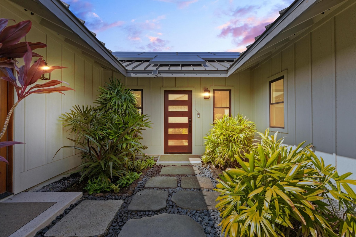 "Waimea Honu Hale". Honu is Hawaiian for turtle, and Hale is Hawaiian for home. Waimea Honu Hale is a magical home nestled in the lush green of the Waimea hills. You'll love the natural outdoors, complemented by the classy interior finishes like the custom walk-in showers, black leather granite counters, or the natural wood floors and Koa rails. This cute haven away from the Hussle of life may have you calling Waimea home. You'll want to stay forever. The beaches are 20 minutes away.