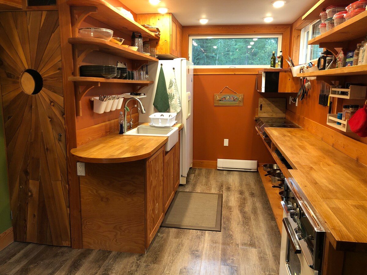 Il Cliffside Cabin è il rifugio ideale sulle Montagne Rocciose Canadesi, con servizi attenti all'interno e all'esterno per completare il tuo soggiorno. Goditi lo splendido scenario montano dalla camera da letto, dal patio, dal barbecue e dal focolare. Sentieri privati conducono al fiume Blaeberry e un piccolo campo da golf con frisbee fatto in casa si trova appena fuori dalla porta d'ingresso. L'accesso è facile e veloce dall'autostrada 1, pur offrendo privacy boschiva dentro e fuori; perfetto per un soggiorno di qualche notte o come campo base per la tua vacanza in montagna.
