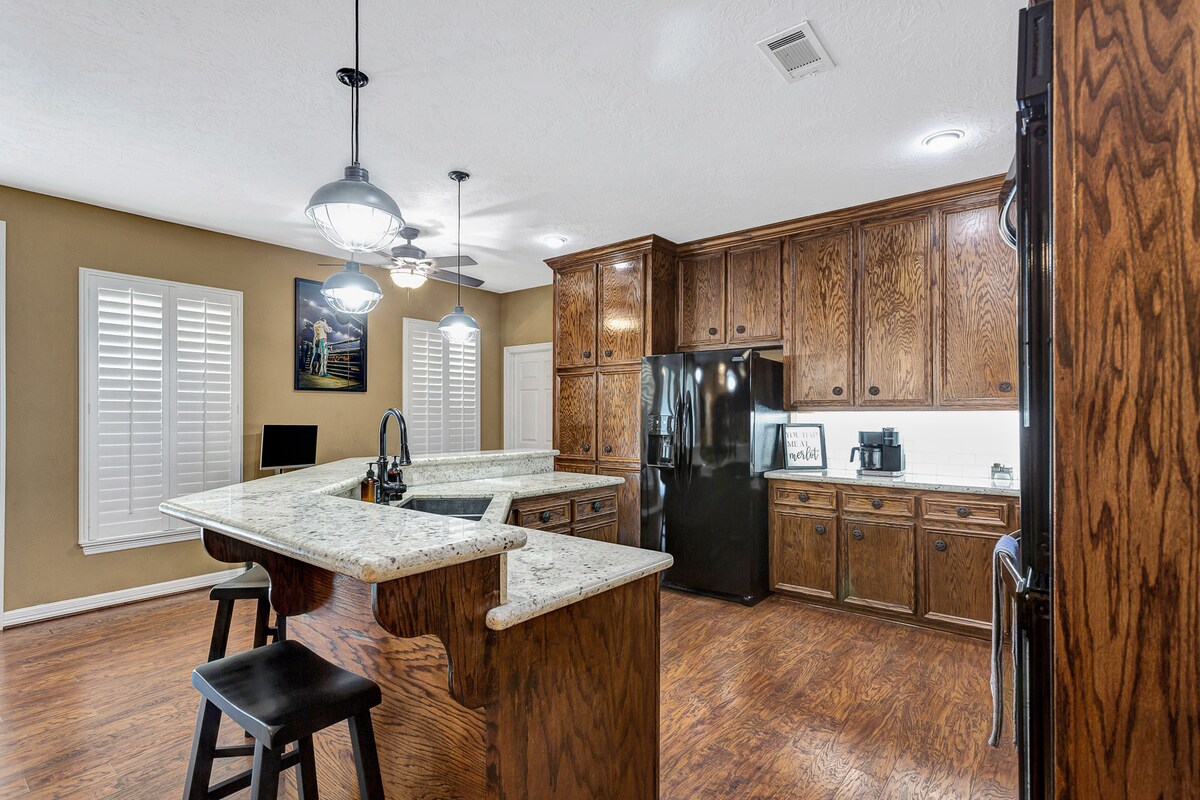 Welcome to your spacious 4-bed retreat in the heart of Katy! Ideal for families, long-term business travelers, relocating guests, or medical visits, this stylish home offers 12-foot ceilings, a fully stocked kitchen, four cozy beds, and over 15,000 sqft of outdoor space. Enjoy the large screened patio surrounded by mature trees — perfect for peaceful mornings or relaxing evenings. Located just minutes from Katy Mills Mall, Typhoon Texas, top-rated hospitals, and Old Katy Downtown.