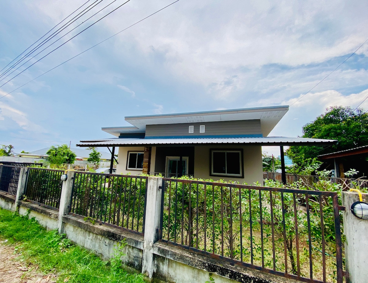 Ti diamo il benvenuto nel nostro incantevole rifugio a Ubon Ratchathani! Molto vicino al centro commerciale Central Plaza. Di nuova costruzione e situata in un quartiere tranquillo, la nostra casa offre un rifugio ideale per i viaggiatori in cerca di tranquillità e relax. Entra per scoprire uno spazio abitativo luminoso e arioso, arredato con mobili contemporanei. L'ampio soggiorno ti invita a rilassarti e socializzare con i tuoi cari, mentre la cucina completamente attrezzata ti invita a scatenare le tue abilità culinarie.