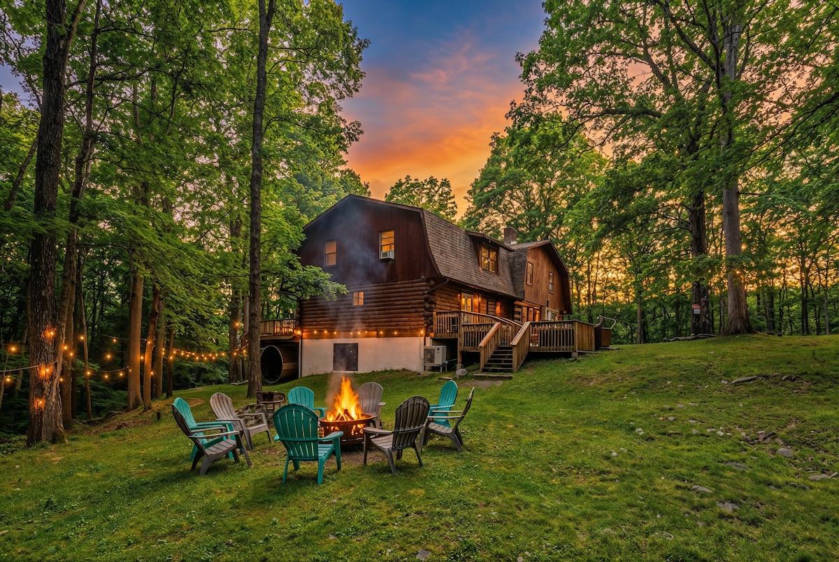 Rustic Rest Log Cabin Poconos, hot tub, creek, ski