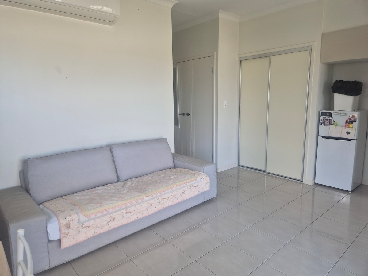 Enjoy this large spacious apartment close to everything. Comfortable Queen bed, kitchen-dining room, bathroom with shower-toilet & laundry. 3.2km from Woolworths, Aldi, Coles, Harvey Norman, Good Guys, KFC, McDonald's, & Pizza. 6.3km from CBD, 500m from University-(USQ) & 5m from public bus stop. Uni Plaza directly across the road, providing Spar grocery shop, bakery, butcher, hairdresser, laundromat, restaurant, & chemist. Perfect for 1 person or 2 people, holidaying or working in Toowoomba.