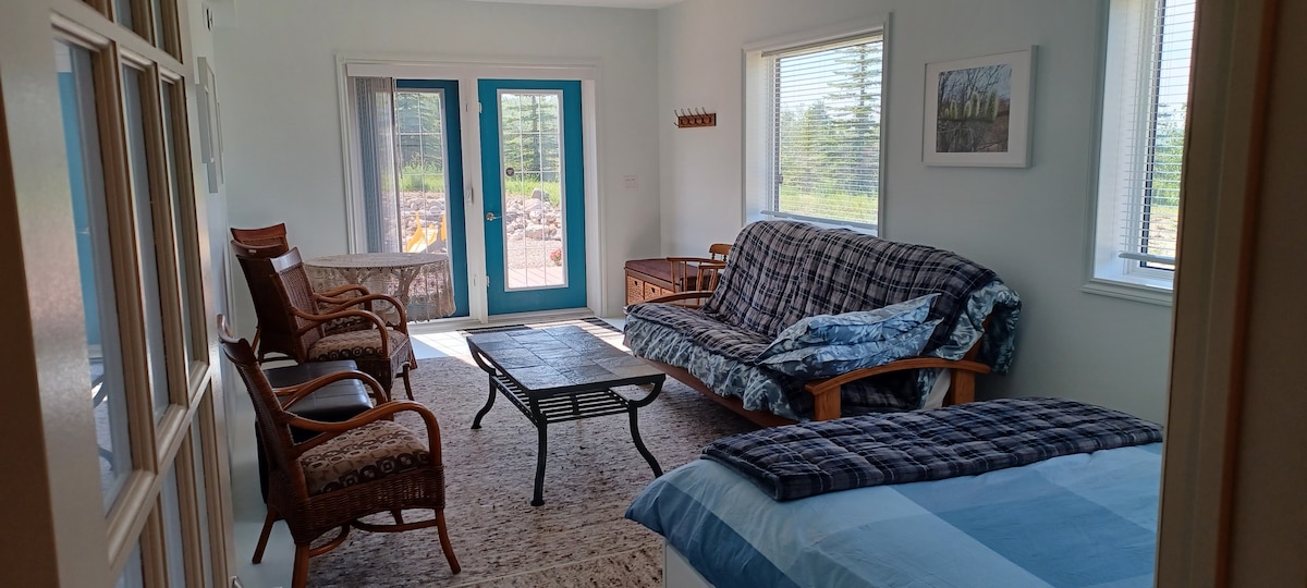 Questo è un loft sopra il garage doppio. Si trova a 13 gradini dal loft, che è privato, spazioso e confortevole. Bagno recentemente ristrutturato che include wc, lavandino e doccia. Il loft è dotato di TV satellitare, mini frigo, microonde, macchina per il caffè Keurig, barbecue, erogatore d'acqua, riscaldamento e aria condizionata. Nel garage sono presenti un trampolino, un braciere e legna, nonché un tavolo da ping pong. Zona tranquilla. Si trova a 3 km dalla spiaggia, nella città di Wasagaming, che si trova nel bellissimo Riding Mountain National Park.