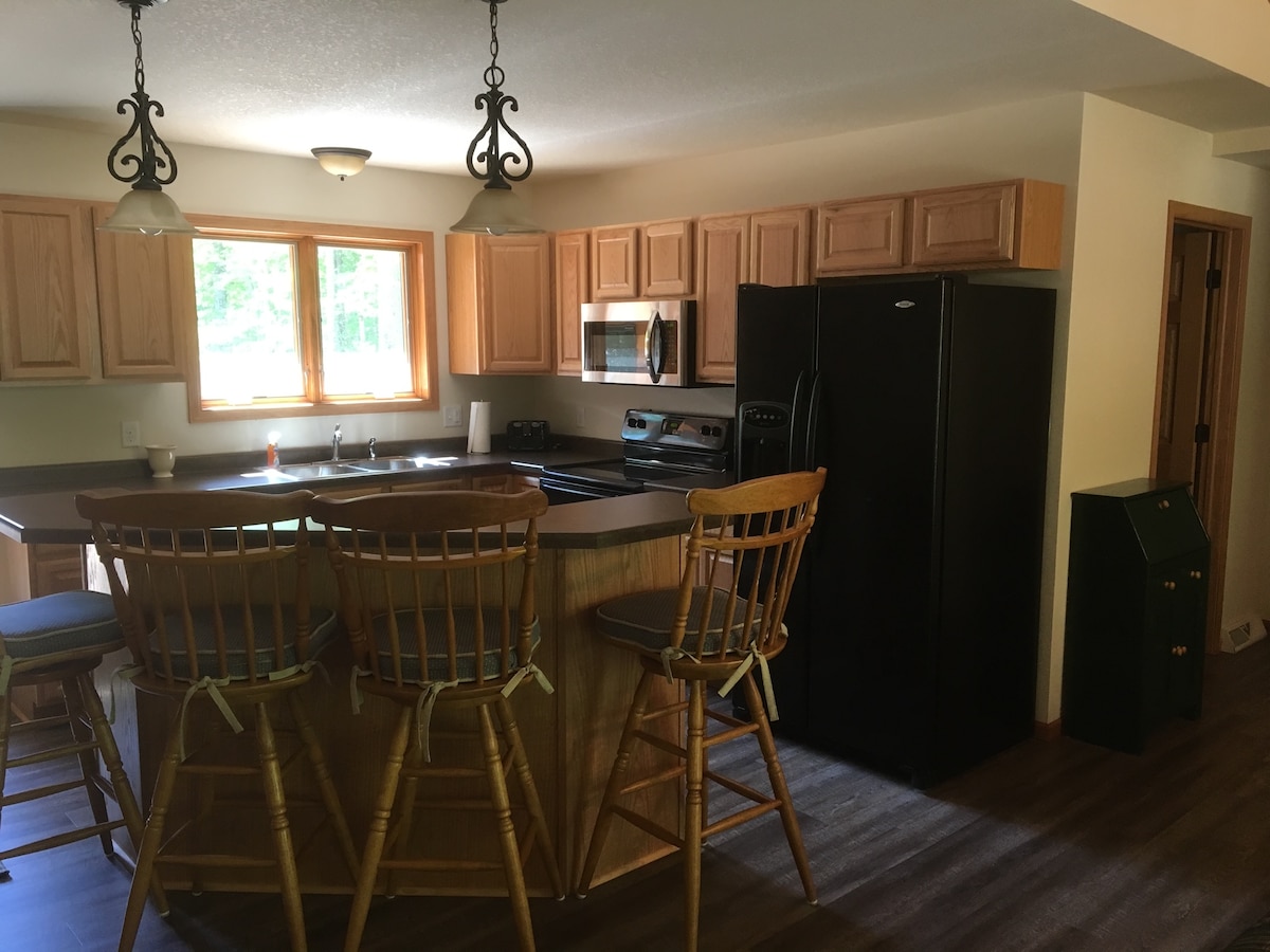 Questo chalet recentemente arredato, con moquette e parzialmente ristrutturato, è immerso nel bosco sul fiume Wisconsin. Questa spaziosa casa con due camere da letto e due bagni ti invita a esplorare i boschi del Nord. Che si tratti di sport acquatici, equitazione, ciclismo, escursioni a piedi, nuoto, pesca o gite di un giorno nelle comunità della zona, il divertimento è assicurato per tutti. Questo alloggio con due camere da letto può facilmente ospitare 8 persone in modo confortevole, senza che si sentano troppo vicine. Il vialetto può ospitare 6 veicoli parcheggiati o fino a 3 veicoli con rimorchi