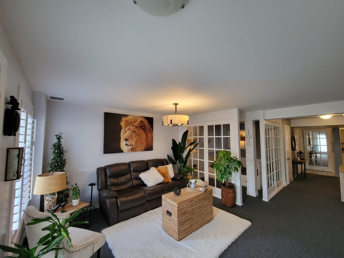 Ti sentirai come a casa in questa grande e luminosa suite con ingresso privato, cucina completa con tutti i comfort, sala da pranzo con 6 posti a sedere, 2 camere da letto con letti accoglienti, letto matrimoniale estraibile La-Z-Boy nel soggiorno e lettino pieghevole che può essere sistemato in molti posti. Bonus: spazio di lavoro con finestra e cabina armadio/ripostiglio di 2,1 x 1,5 metri! Posto auto per 2 ospiti nel vialetto, a pochi passi dai mezzi pubblici e a pochi minuti dalle autostrade. Tanta luce naturale e accesso diretto al cortile. Rilassati e goditi la Smart TV, Disney+, Crave, libri e DVD.