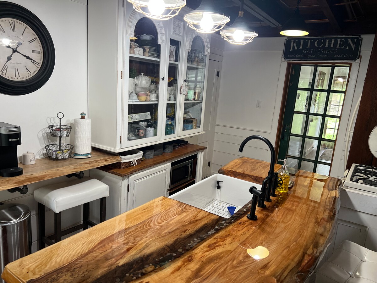 Coppersmith Cottage ospita questo ordinato non fumatori, senza animali domestici, spazio abitativo. Spiacenti, il WIFI è lento o inesistente per questo spazio. In questa zona rurale non ci sono opzioni per il WIFI. C'è la TV di base (non cavo). Non c'è cucina ma c'è un bagno accogliente e salotto con letto queen-size. Gli ospiti hanno accesso al parco e alla spaziosa terrazza dietro il cottage. +++Potresti vedere o sentire la fauna selvatica a tutte le ore proprio fuori dalla porta del cottage ++