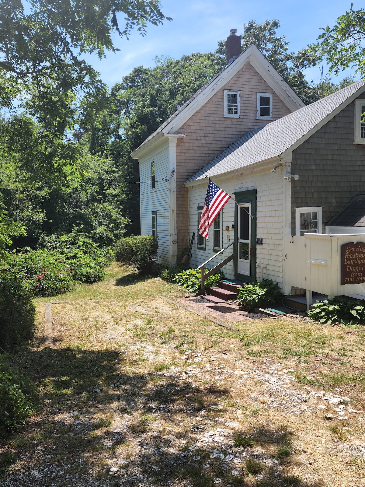 Divertimento per coppie/famiglie tutto l'anno in un incantevole cottage privato a Cape Cod con portico schermato, patio e doccia esterna (a novembre/dicembre/gennaio diventa un cottage Gingerbread). All'interno: spazio abitativo aperto con letto matrimoniale e zona salotto. La scala conduce a un soppalco con 2 letti singoli. Bagno completo con doccia interna. Angolo cottura: vedi descrizione di seguito. Forniamo tè, caffè locale, spezie, condimenti, griglia a gas, borse frigo, teli mare e sedie. Per ospitare fino a 8 persone, affitta anche la nostra Upper Room su Airbnb.