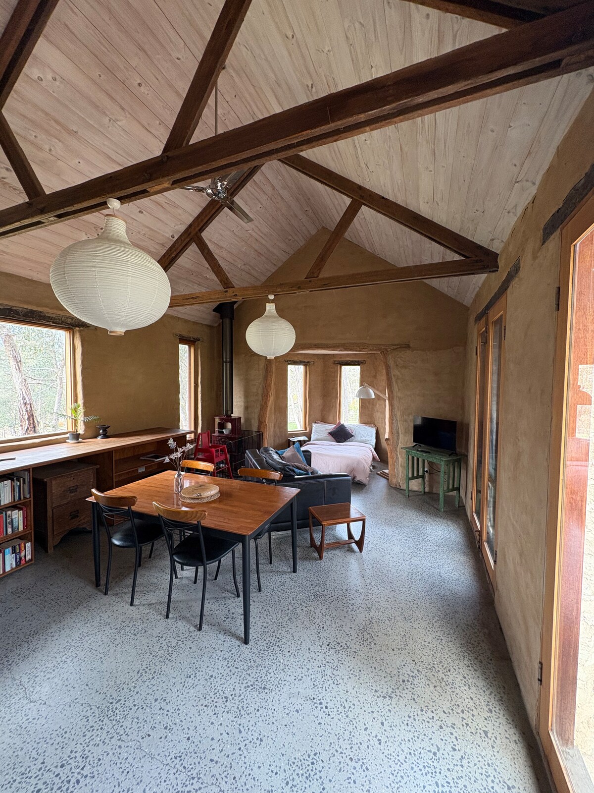 Esplora Castlemaine e i dintorni da The Paddock Ecovillage, situato in posizione strategica ai margini del bosco e della città. La nostra suite per gli ospiti può ospitare comodamente quattro persone e include un salotto, un angolo cottura ben attrezzato e l'accesso a una cucina completa in comune. La vista si estende attraverso la proprietà dell'ecovillaggio fino al bush circostante. Il centro della città, compresa la stazione ferroviaria di Castlemaine e una fantastica selezione di caffè, ristoranti e attrazioni culturali, è a soli 15 minuti a piedi.