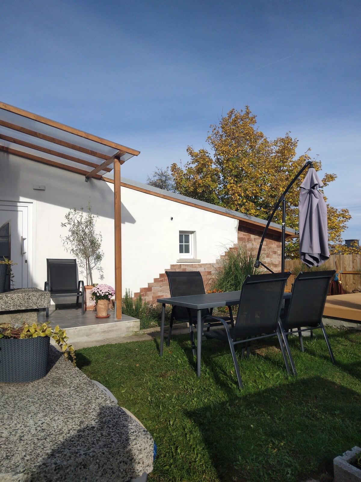Sdraiati e rilassati – in questo alloggio tranquillo ed elegante. Recentemente ristrutturato e completamente arredato a nuovo, l'"Haselnuss" invita a soffermarsi. Per le vostre vacanze - se necessario con lavoro d'ufficio - è perfetto. La nostra casa a graticcio storica è stata costruita oltre 200 anni fa ed è stata recentemente ristrutturata. La "nocciola" si trova al piano terra della casa ed è di circa 50 mq. L'ampio giardino permette di ricaricare le batterie o di scatenarsi. Accesso diretto alla terrazza.