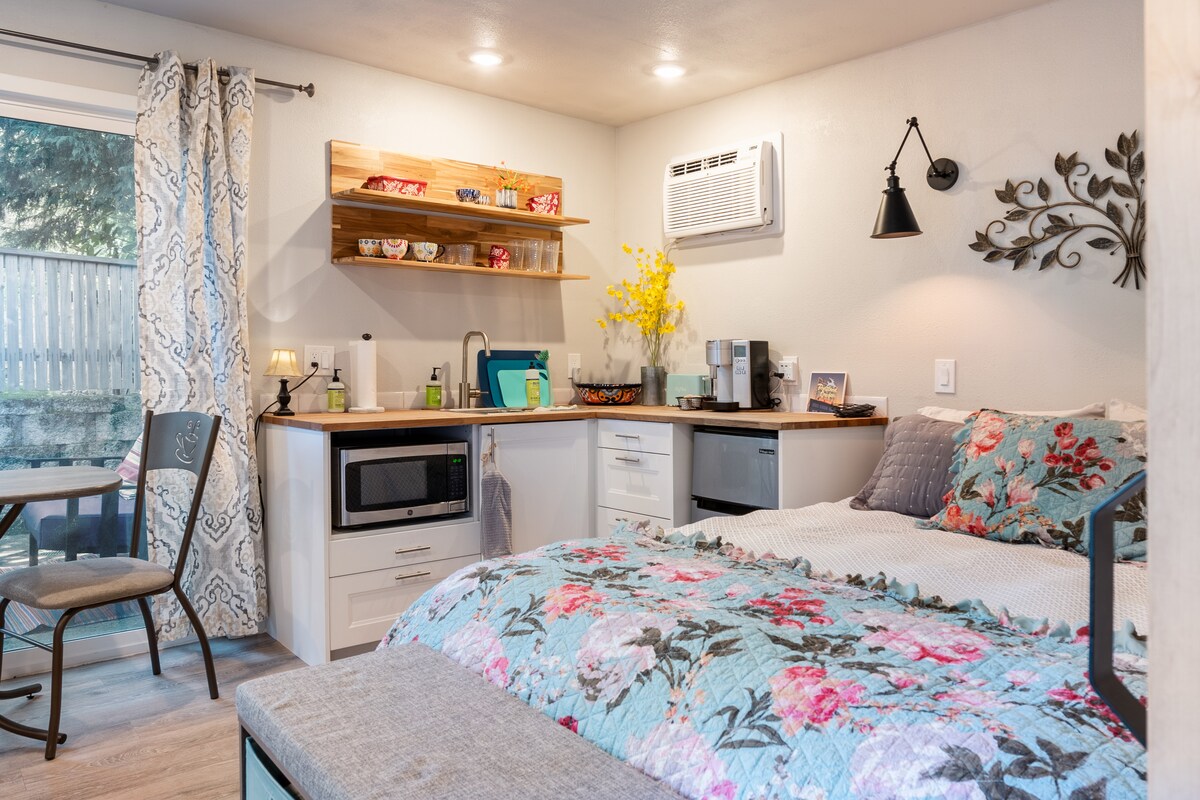 Sentiti a casa in questo accogliente ADU indipendente ed esplora il fiorente centro di Beaverton, oppure sali sul Max per un breve viaggio a Portland. Con un punteggio di 81, puoi raggiungere a piedi una varietà di ristoranti e parchi in qualsiasi momento, e un meraviglioso mercato contadino il sabato. Questo alloggio in affitto include un ingresso indipendente, un patio, una cucina completa, una lavatrice e un'asciugatrice, una zona pranzo, un letto matrimoniale e una grande TV. I proprietari sono sul posto e desiderosi di garantirti la migliore esperienza possibile.