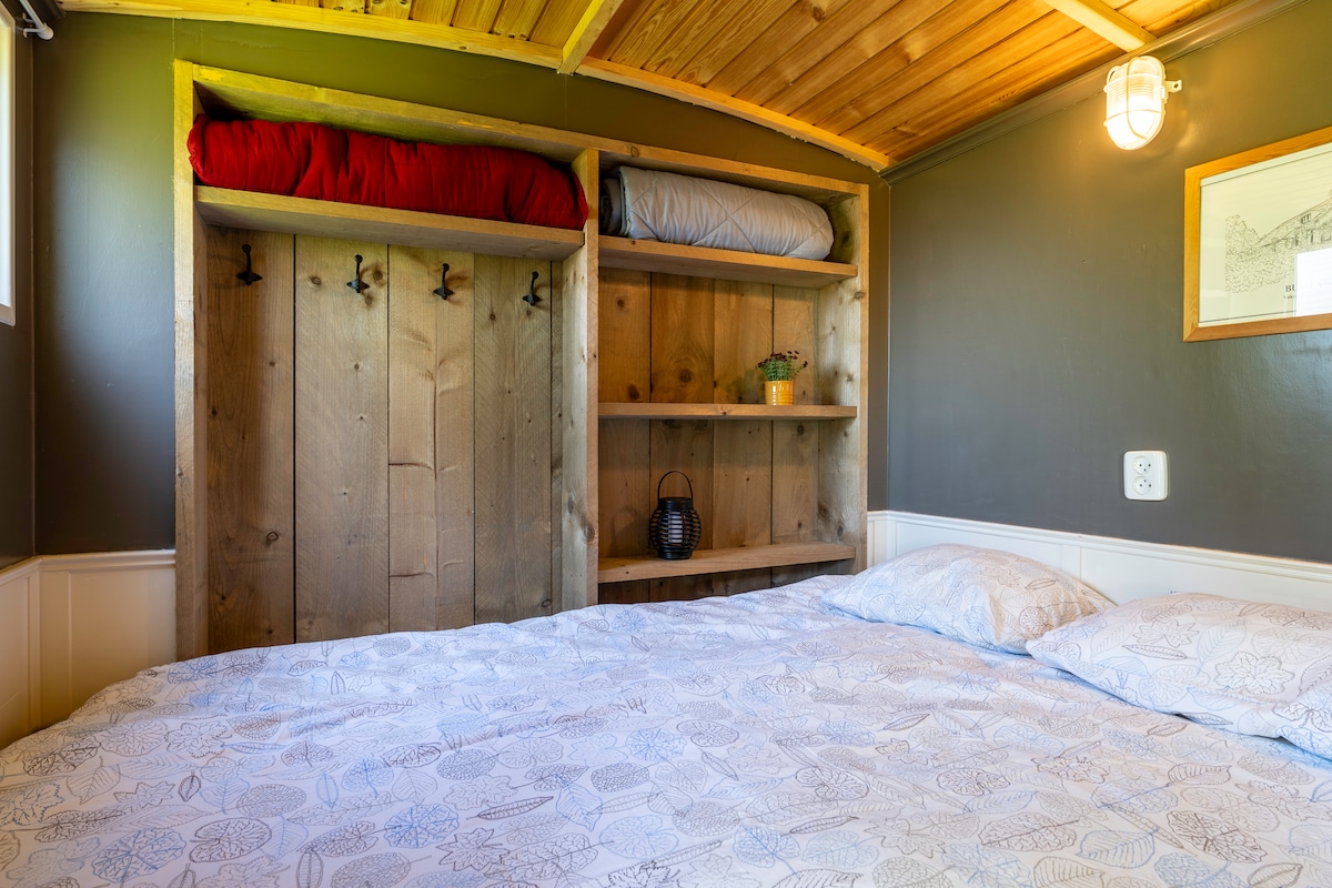 Vuoi soggiornare una notte speciale? Vieni a soggiornare a Kate! Una minicasa con letto matrimoniale, un accogliente salottino e una mini cucina. Ti affacci sul campeggio e sul Groningerland e puoi stare all'ombra davanti al tuo cottage sotto il noce. I servizi igienici si trovano nella fattoria, dove si trova anche la cucina del campeggio. Nel nostro campeggio naturale ci sono 4 cottage per dormire e 4 posti campeggio. Nel prezzo sono inclusi 1 posto auto, wifi, luce, acqua, uso dei servizi di campeggio.