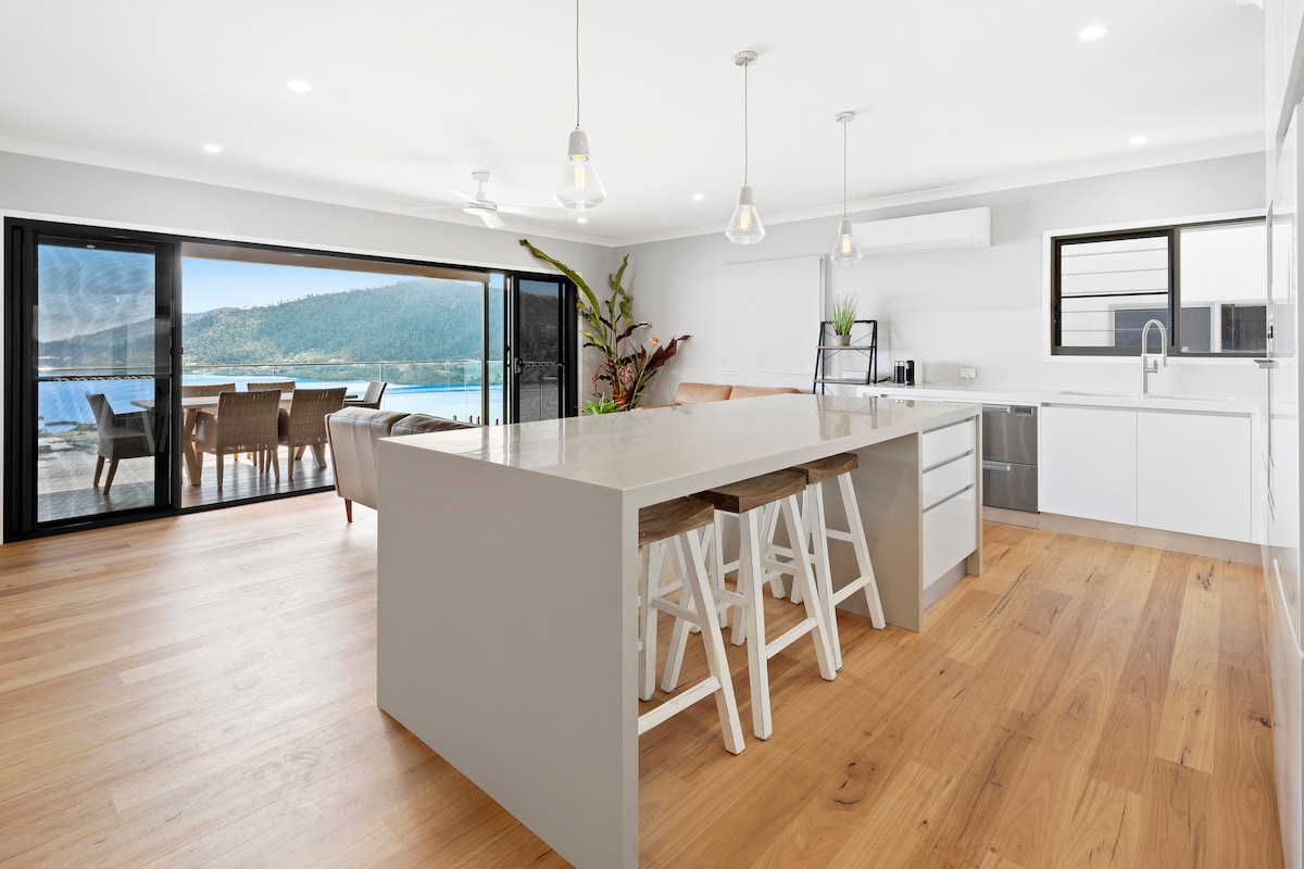 Una casa dal design architettonico unico, costruita per sfruttare la brezza marina e splendide viste sull'oceano. Affacciata su Gloucester Island, questa casa è stata progettata appositamente per questo clima, con alti soffitti a cattedrale, una zona giorno open space e un ampio balcone che offre una magnifica vista a 180 gradi sul mare e sulla brezza delle Whitsunday. Dispone di 3 camere da letto con aria condizionata, 2 bagni, cucina completamente attrezzata con macchina da caffè Nespresso e una splendida piscina privata. Gli animali domestici saranno presi in considerazione su richiesta.